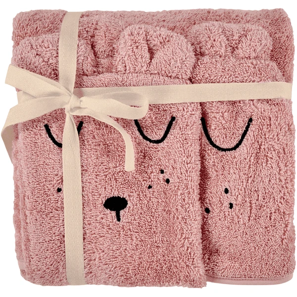Alvi® Frottier-Set Kaputzenbadetuch & Waschhandschuh rosa