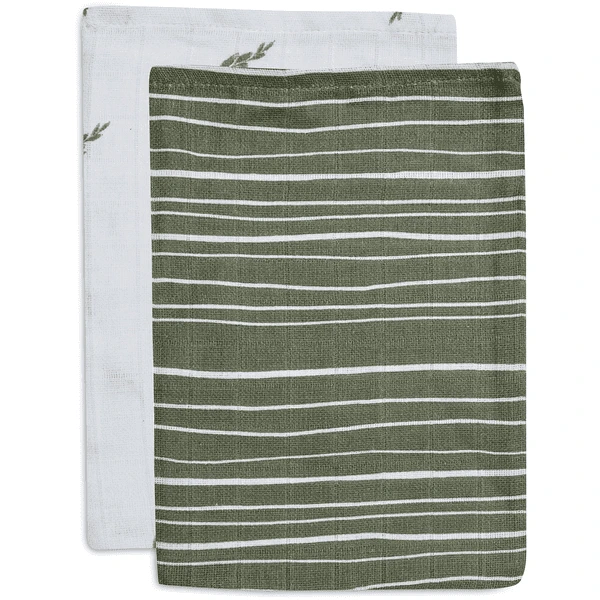 jollein Waschlappen Musselin 2er-Pack Stripe Olive Leaf Green