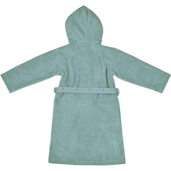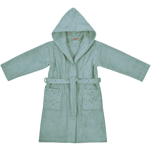 zwei aufgesetzten Taschen. Der Bademantel ist mit kleinen Sternen bedruckt.