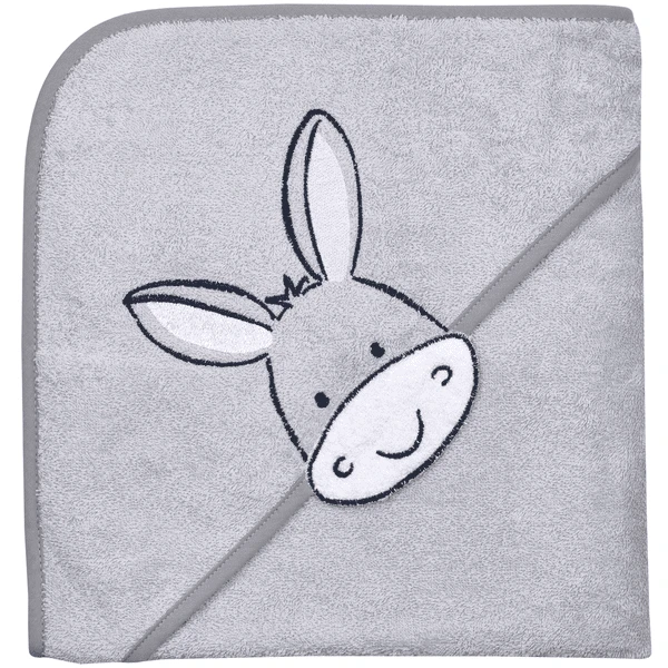 WÖRNER SÜDFROTTIER Kapuzenbadetuch Esel hellgrau 100 x 100 cm